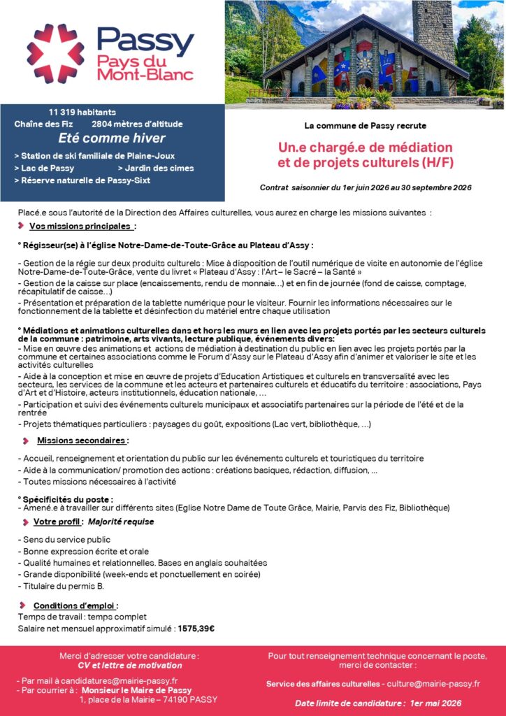 Service de rattachement : Culture Date limite de candidature : 01/05/2026 Date de prise de poste : 01/06/2026 Catégorie : Catégorie C Type de contrat : Emploi saisonnier